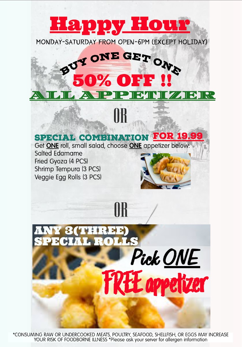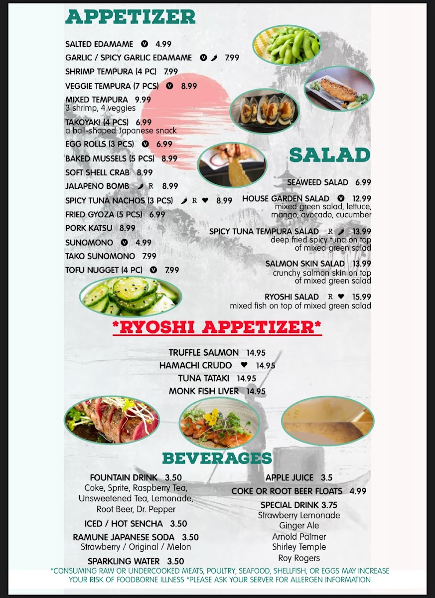 Ryoshi Sushi Japanese Restaurant offers an extensive and delightful menu that caters to all tastes, providing a wide variety of dishes ranging from appetizers to sushi combinations. Starting with appetizers, options like O-Veggie Egg Rolls (3 Pc.) and O-Spicy Tuna Nachos (3 Pc.) are great for those seeking light starters. If you're in the mood for something crispy, try the O-Mixed Tempura (3pc Shrimp, 4 Veggies) or the O-Pork Gyoza (5 Pc.).