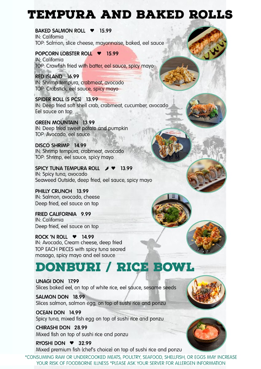 For salad lovers, options such as the O-Seaweed Salad and the O-Ryoshi Salad provide a refreshing complement to the meal. You can also try the O-Seared Tuna Salad for a little extra protein. The tempura and baked rolls section features favorites like the O-Spicy Tuna Tempura Roll and the O-Rock’n Roll, offering rich flavors and crunchy textures.